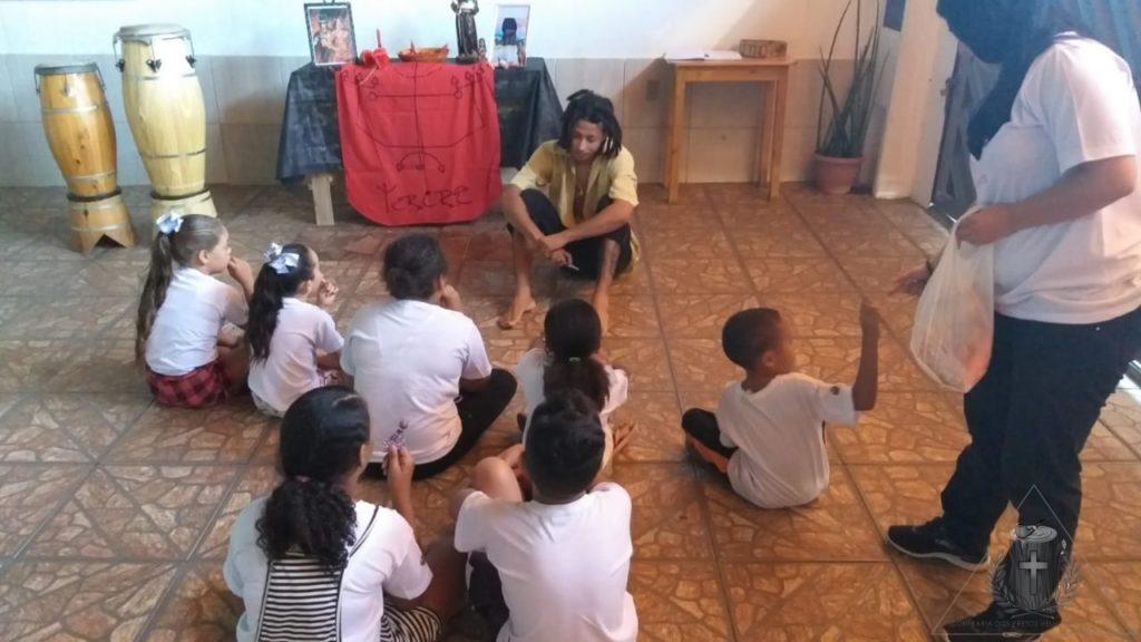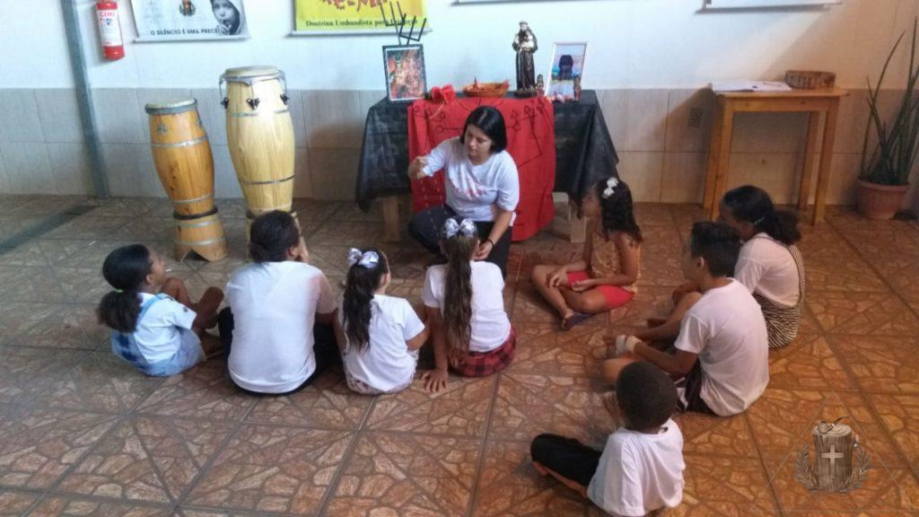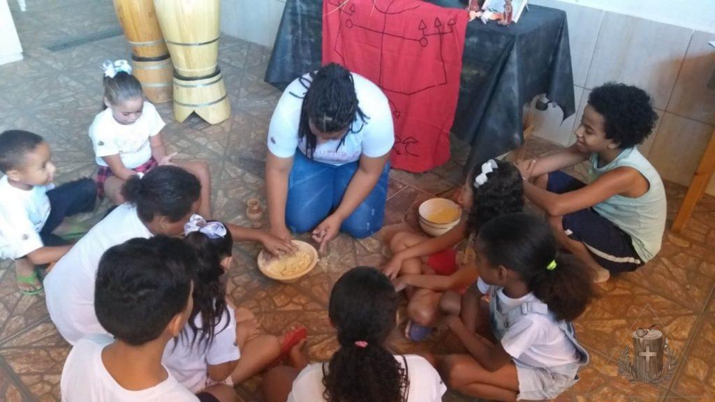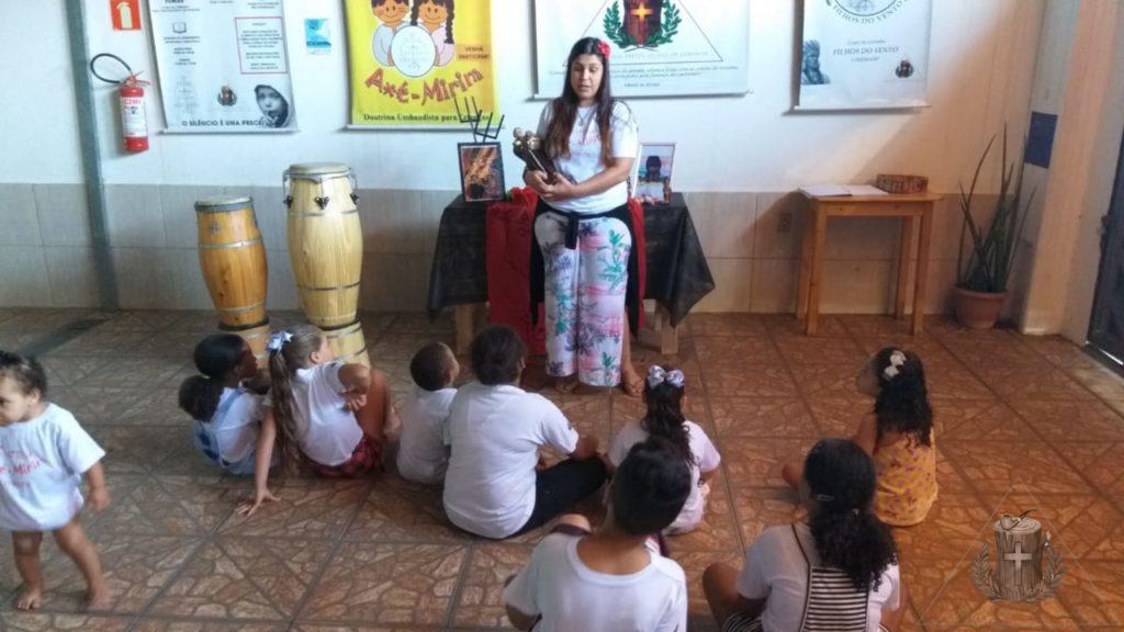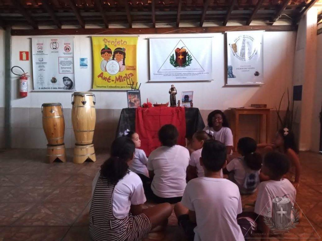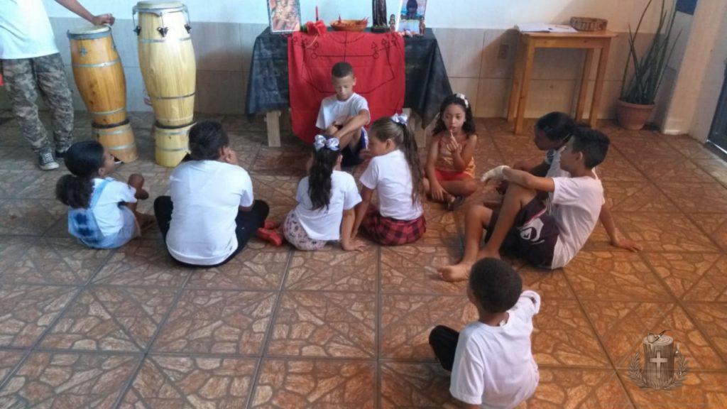 No sábado (7) nossa turminha aprendeu um pouco mais sobre os Exus, as Pombagiras e os Exus Mirins, e no final tiveram aula de capoeira.
