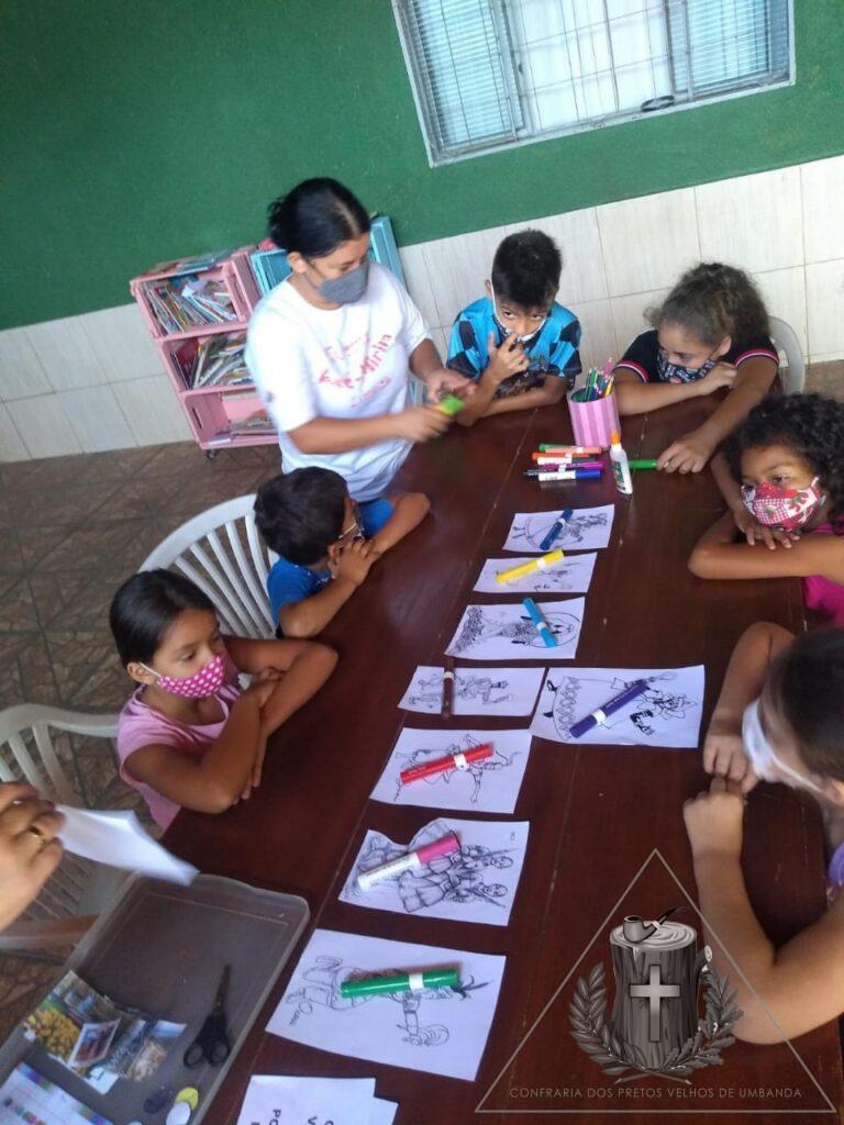 Nesse último sábado, 26/02/22, nossa turminha teve a primeira aula do ano, tiveram uma apresentação geral de todos os Orixás, com cores, campo de atuação, elementos e sincretismo. No final, levamos as crianças para conhecer o Congá onde com o auxílio de um monitor firmamos velas a todos os Orixás.