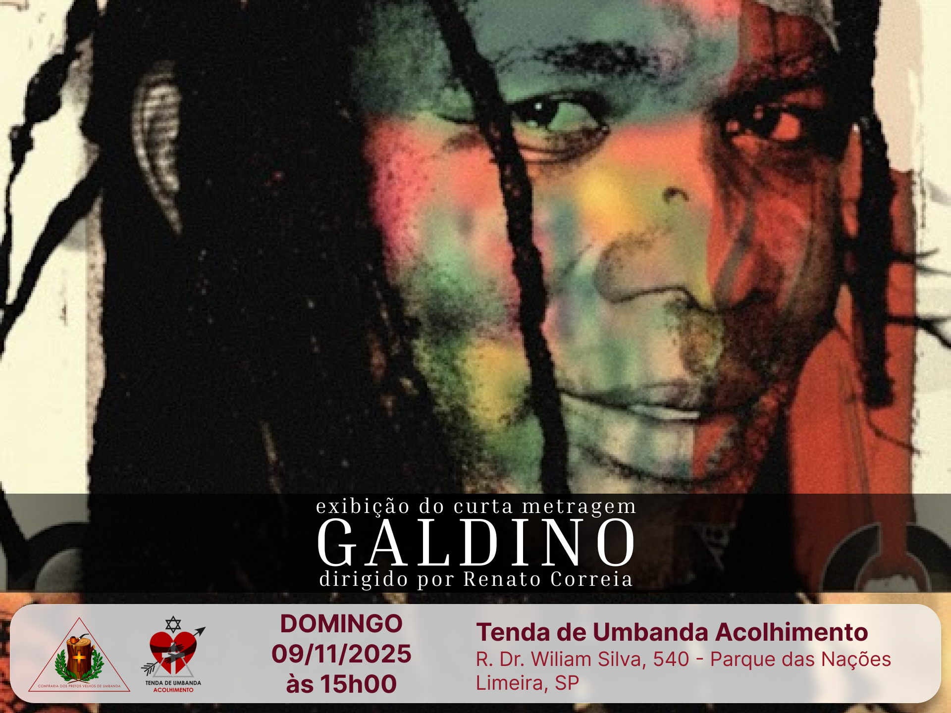 Neste domingo, 09/11, às 15h00, realizaremos na Tenda de Umbanda Acolhimento, a exibição do filme documental de curta metragem “Galdino”, dirigido por Renato Correia e que traz a história do artista limeirense José Galdino de Souza Clemente.
