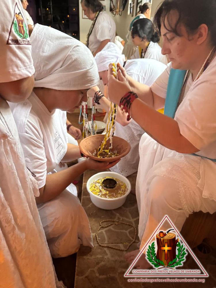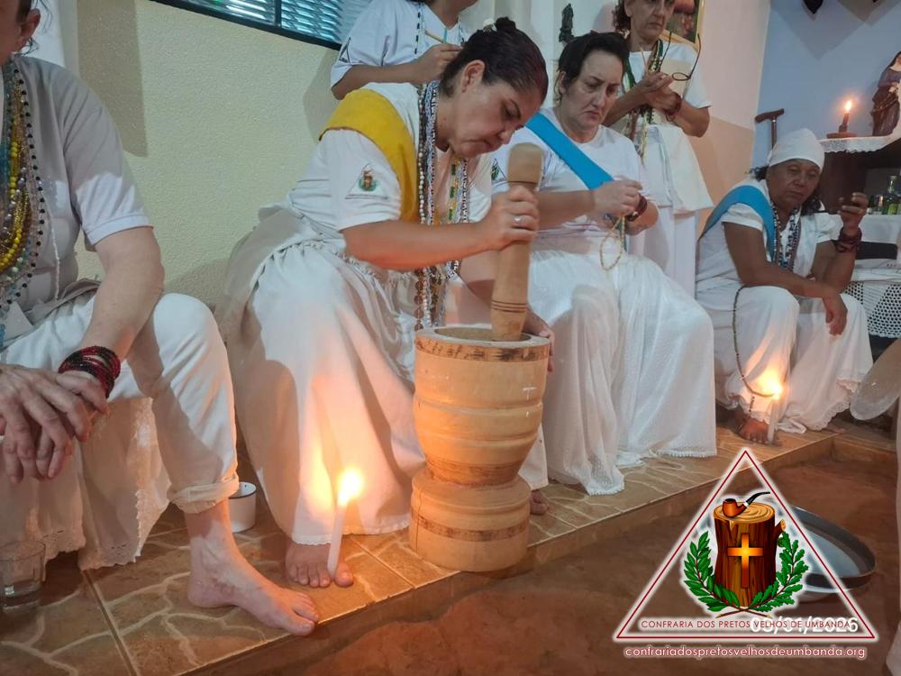 Nesta mesma data, dedicamo-nos ao preparo da Pemba Pilada. Este elemento essencial em nossa ritualística é fruto da mistura do giz sagrado com ervas e pós de axé, resultando em um poderoso condutor de energia utilizado para firmezas, proteção e cruzamento dos trabalhos espirituais.