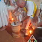 No dia 03 de janeiro, nossos Morubixabas e Abaré-Guaçus se reuniram para manipular os elementos sagrados que sustentam nossa gira. Realizamos o preparo do Amaci, o extrato vital das ervas sagradas que tem a função de limpar, equilibrar e imantar o Ori (cabeça) do médium, fortalecendo sua conexão com o Divino. Foram preparadas as bases do Amaci correspondentes às forças dos Orixás Oxalá, Oxum, Ogum, Yansã, Xangô, Yemanjá, Oxóssi, Nanã Buruquê e Obaluayê.