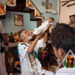 Após uma semana de preceito, no dia 10 de janeiro, realizamos o ritual de consagração. Cada filho da casa recebeu o Amaci em seu Ori, permitindo que a energia vegetal nutrisse sua coroa mediúnica para o novo ciclo de trabalho.