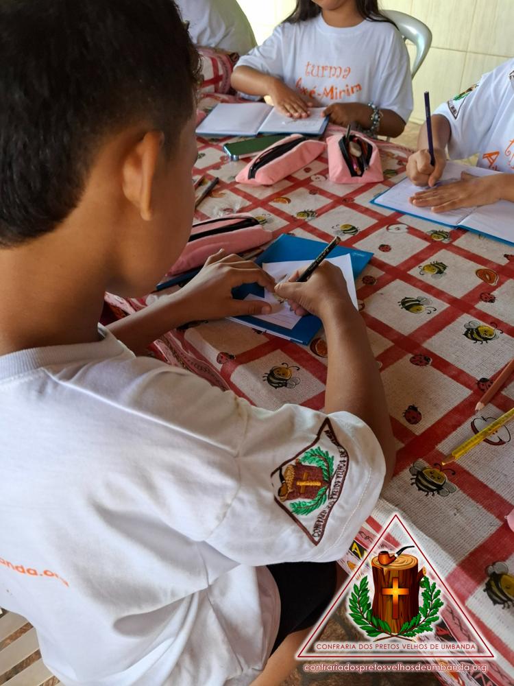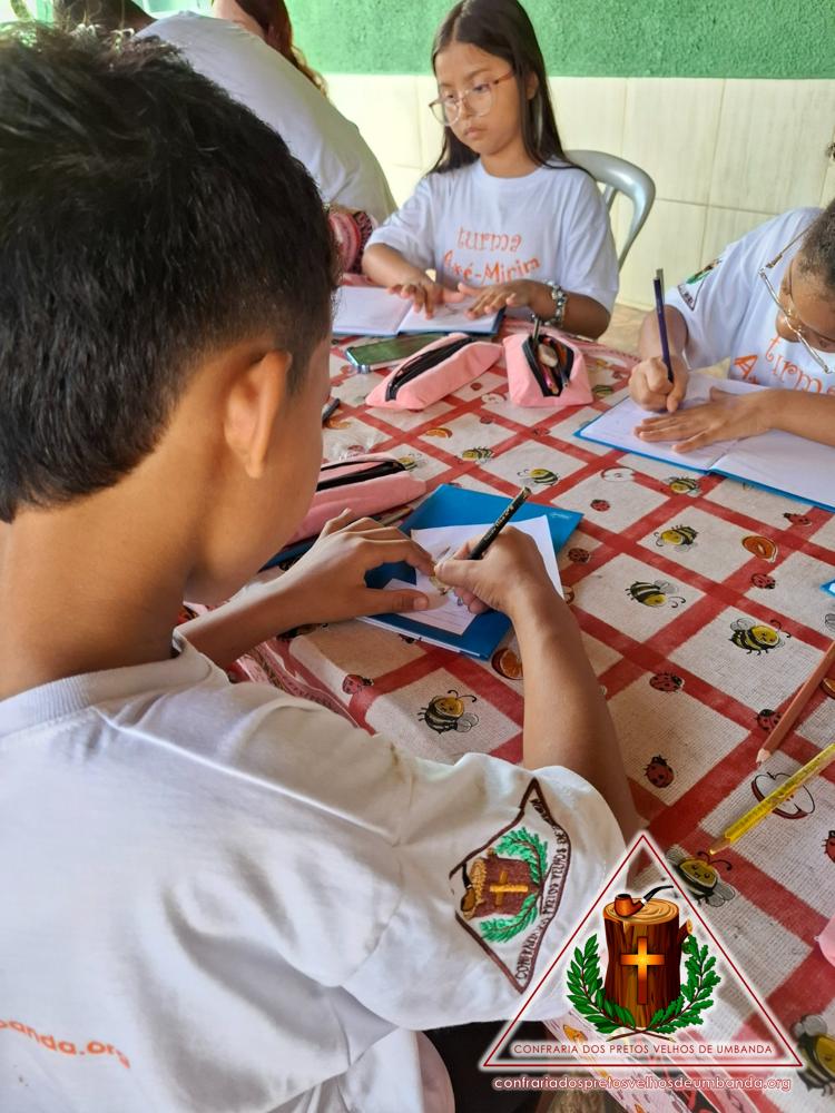 AXÉ-MIRIM – Aula sobre Orixás e Entidades – 07/03/2026Por Vinicius Santos / 7 de março de 2026 / Axé-Mirim Hoje, dia 07/03, a Turma do Axé-Mirim relembrou os conhecimentos adquiridos ao longo do tempo sobre os Orixás e as entidades. Também iniciaram a preparação de um projeto, para apresentar esse conhecimento aos colegas.