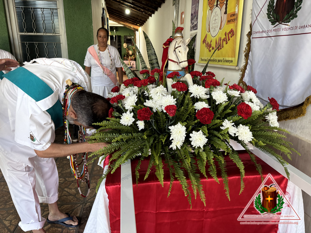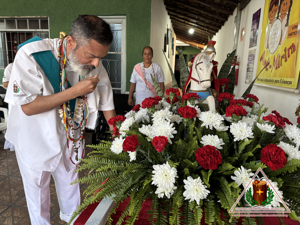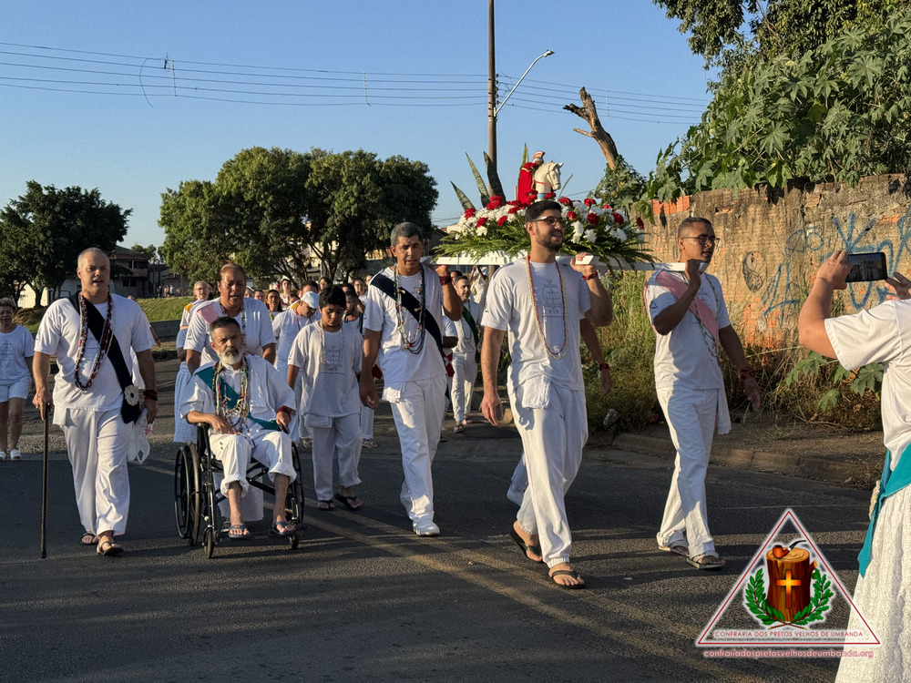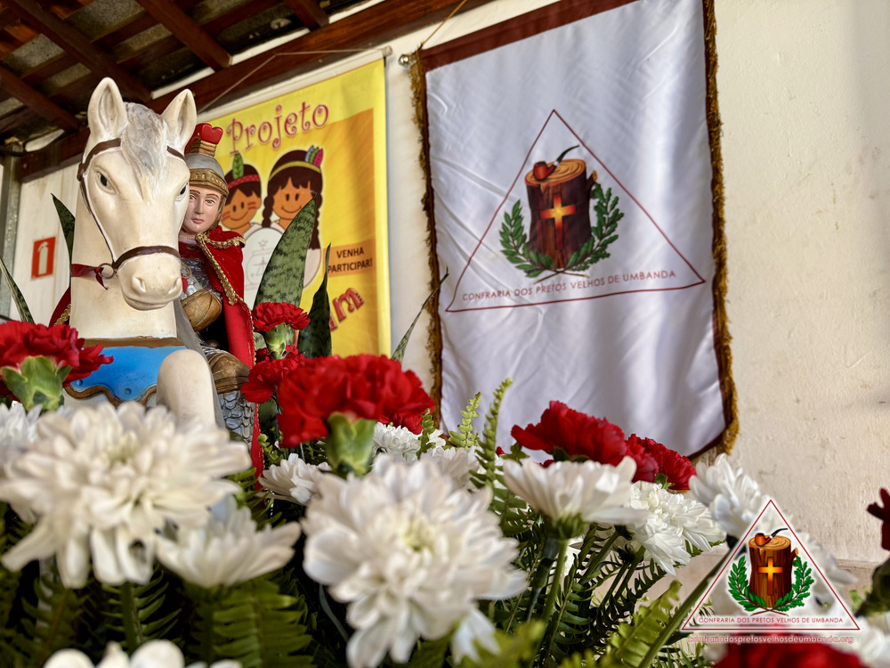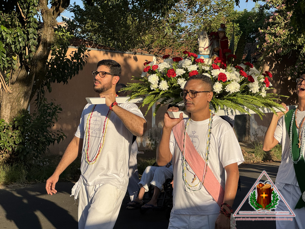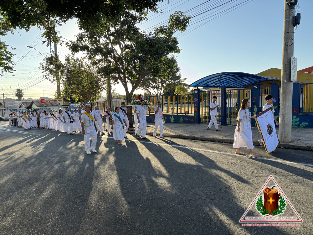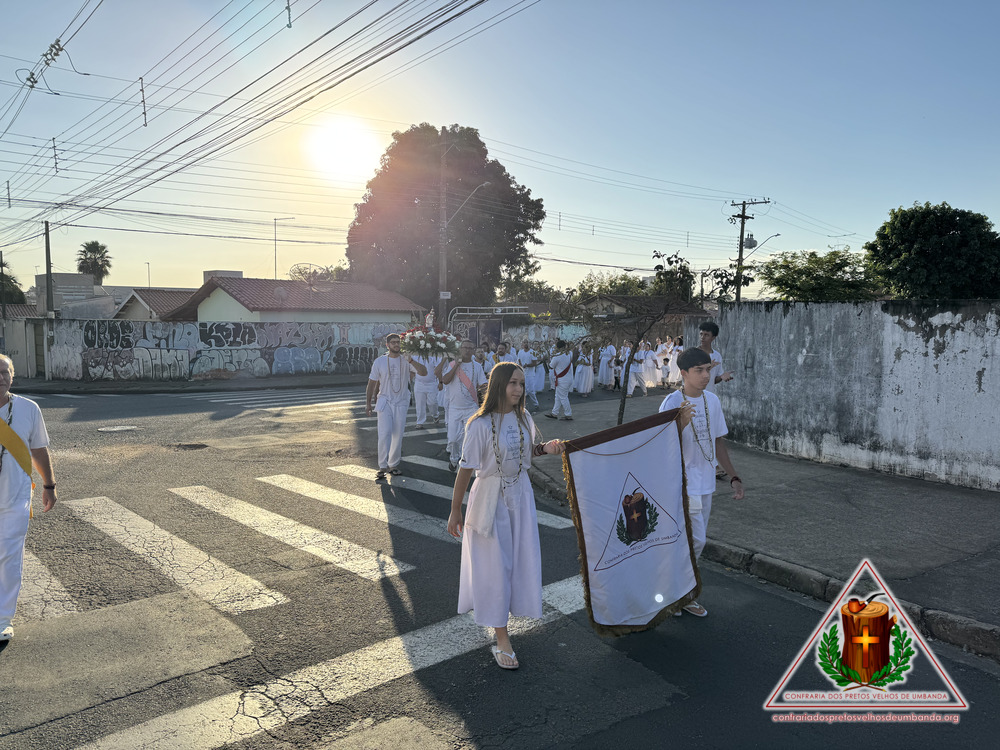 As celebrações tiveram início às 16h30 com uma caminhada pelas ruas do entorno de nossa sede. Conduzindo a imagem de São Jorge, com o objetivo de marcar presença e demonstrar a grandeza e a importância da Umbanda. Foi um ato de louvação, onde nossos filhos de fé cantaram, vibraram e bateram palmas no ritmo do nosso axé. Caminhamos não para chamar atenção, mas para expressar publicamente nossa fé, com absoluto respeito, responsabilidade e disciplina.