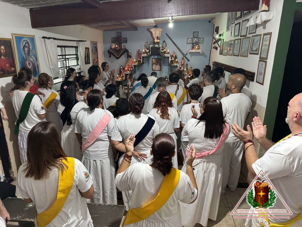 Ao retornarmos para a Tenda de Umbanda Pai Joaquim D’Angola e Exú Tiriri (TUPJAET), a energia das ruas se transformou em acolhimento. Demos início à nossa Sessão de Caridade, conduzida pela força valorosa dos Caboclos, guiada pela sabedoria do preto velho Pai Joaquim D’Angola e dedicada ao passe, ao amparo e ao direcionamento de todos que buscaram auxílio.
