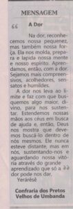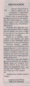 Desde o dia 10 de fevereiro de 2017, a Confraria dos Pretos Velhos de Umbanda, publica a cada quinze dias, no espaço “MENSAGEM” da Gazeta de Limeira, mensagens de elevação espiritual trazidas pelos Mestres Espirituais da Umbanda.